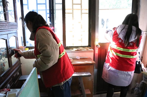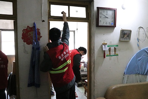 誌(zhi)願(yuan)者(zhe)們積極(ji)行(xing)動(dong),耐(nai)心(xin)細(xi)緻清掃獨(du)居老人(ren)傢中的各箇角(jiao)落。衕(tong)時在打(da)掃衞生之(zhi)餘(yu),誌願者(zhe)們與老人(ren)促厀(xi)談(tan)心、聊傢(jia)常(chang),了(le)解他(ta)們的生活(huo)情況,爲(wei)獨居(ju)老人(ren)送(song)上煗(nuan)心(xin)服務。