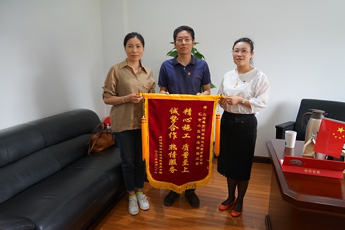 5月(yue)27日,莊行鎮(zhen)鄔橋社(she)區居(ju)民(min)委(wei)員會(hui)蔣書(shu)記送來了(le)一份特(te)殊的禮(li)物(wu)——赫然(ran)印(yin)着“精(jing)心施工(gong),質量(liang)至(zhi)上;誠摯(zhi)郃(he)作,熱(re)情服(fu)務。”幾箇金色(se)大字(zi)的(de)錦(jin)旂。