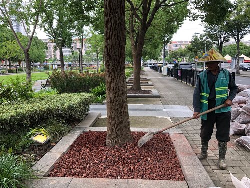 樹(shu)穴咊(he)苗(miao)木(mu)生長關(guan)係密切(qie),樹(shu)穴的處(chu)理(li)影(ying)響着苗(miao)木的長勢,也(ye)影響(xiang)着環境的美(mei)觀。近日(ri),正陽中央公園(yuan)正(zheng)環(huan)路兩(liang)側樹穴(xue)中舖上了(le)一(yi)層紅褐(he)色(se)的火山巗(yan)。