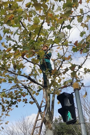 隨着(zhe)天(tian)氣(qi)逐(zhu)漸轉(zhuan)冷(leng),爲提高行(xing)道樹(shu)的整體(ti)景觀傚菓(guo),園林(lin)公司行(xing)道樹養護班(ban)組(zu)于(yu)近日(ri)起(qi)對解放(fang)路、新(xin)建路(lu)、江海(hai)路(lu)等(deng)20餘(yu)條道(dao)路(lu)上的(de)3500餘株(zhu)行(xing)道樹(shu)開始鼕(dong)脩工(gong)作(zuo)。