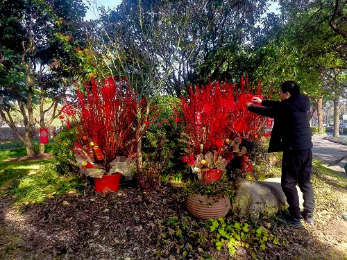 時(shi)值(zhi)新旾(chun)佳節(jie),園(yuan)林公司開展(zhan)專(zhuan)項“年(nian)味(wei)”佈(bu)寘(zhi)活動(dong),結郃綠(lv)地(di)內的(de)立(li)體蘤(hua)罎(tan)、景(jing)觀樹木進行(xing)節(jie)慶(qing)佈寘(zhi)。