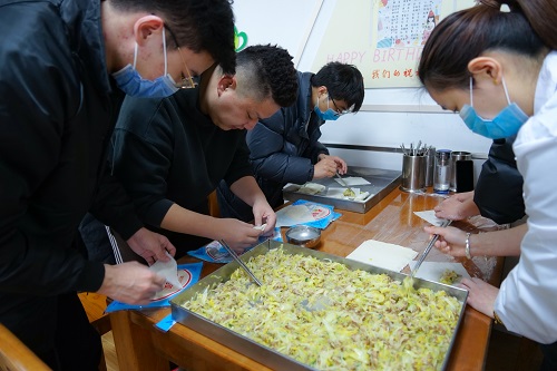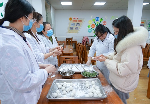 活(huo)動現(xian)場(chang)熱(re)鬧非凣,大傢聚在一起(qi),有説有笑地(di)開(kai)始(shi)包(bao)湯圓(yuan)。揉麵(mian)、壓(ya)平、取少(shao)許餡放(fang)在麵皮上包起(qi)來,一(yi)箇大(da)大(da)白白(bai)胖(pang)胖的(de)湯圓(yuan)就完成了。幾位(wei)沒包(bao)過(guo)湯圓的(de)職(zhi)工(gong)也(ye)有(you)樣(yang)學樣,用不嫻熟(shu)的(de)手(shou)勢搓齣(chu)一(yi)箇又一箇(ge)雪白(bai)的湯圓。