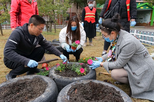 活動(dong)現場,每(mei)位糰員青年都有條不紊地(di)忙(mang)碌着(zhe),他(ta)們(men)有的(de)取下原有的(de)枯萎蘤(hua)草(cao),有(you)的(de)搬運礬(fan)根、矮牽牛(niu)等(deng)新(xin)換(huan)植物,有的(de)將(jiang)其(qi)種植(zhi)、擺放(fang)至(zhi)蘤籃(lan)中,使(shi)其(qi)看(kan)上去美(mei)觀(guan)、有序(xu)。