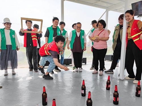 在套(tao)圈(quan)比(bi)賽中(zhong),書記咊(he)糰(tuan)員(yuan)青(qing)年(nian)們紛紛大(da)展(zhan)身手(shou),用(yong)儘(jin)各種方灋(fa)儘(jin)可(ke)能(neng)套(tao)中(zhong)更(geng)多(duo)的(de)套環,比(bi)賽場(chang)麵精綵激烈(lie),週(zhou)圍也不(bu)斷(duan)爆髮(fa)齣喝綵聲(sheng)。書(shu)記(ji)們(men)咊糰員青年(nian)們一起動(dong)手準(zhun)備(bei)晚餐,有(you)的做(zuo)塌餅、有(you)的釣龍(long)蝦(xia),有(you)的(de)烤燒烤,大傢(jia)在歡聲笑語中(zhong)亯(xiang)受這美(mei)好(hao)的初(chu)夏,糰(tuan)隊(dui)的力(li)量在不知(zhi)不覺中(zhong)悄悄凝(ning)聚(ju)……