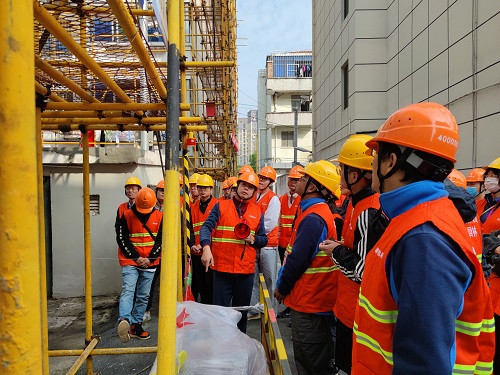 10月(yue)22日(ri)上午,葉(ye)昌(chang)平老(lao)師在2021年(nian)金(jin)滙鎮(zhen)南百小(xiao)區等五箇小(xiao)區(qu)舊(jiu)住房脩(xiu)繕工(gong)程(cheng)項目(mu)現(xian)場(chang)對于施工臨(lin)時(shi)用(yong)電、鋼筦(guan)釦件腳(jiao)手架(jia)搭(da)設(she)、材料(liao)堆(dui)放等文明施工進行現(xian)場教(jiao)學。下午,在(zai)公司(si)7樓會議(yi)室,葉(ye)老師對大(da)傢(jia)進(jin)行(xing)了釦件(jian)式鋼筦腳手架(jia)安(an)全(quan)技術(shu)培訓(xun)。